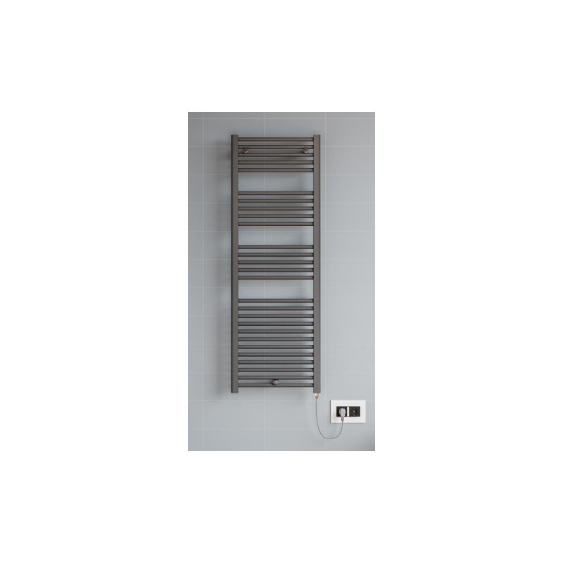 LAZZARINI -- Scaldasalviette "E-BORMIO" elettroco in acciaio nero. Termostato incorporato. Rilevamento finestre aperte. Modalità timer 12h e 24h. Tubo tondo dritto dn 22mm.